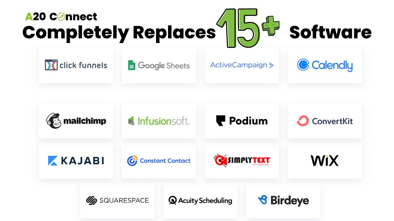 A20 Connect unifies all these essential functionalities into one powerful platform. Say goodbye to the hassle and expense of multiple subscriptions. Save time and reduce costs by replacing 20+ tools with a single, affordable solution.